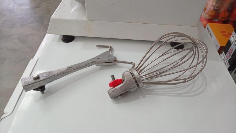 - Esta provista de un gancho mezclador y un batidor con cuerpo de fundición de aluminio pulido y alambres de acero inoxidable.