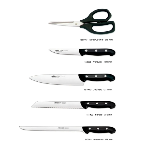 Juego de cuchillos cinco piezas ARCOS con taco de madera 1521